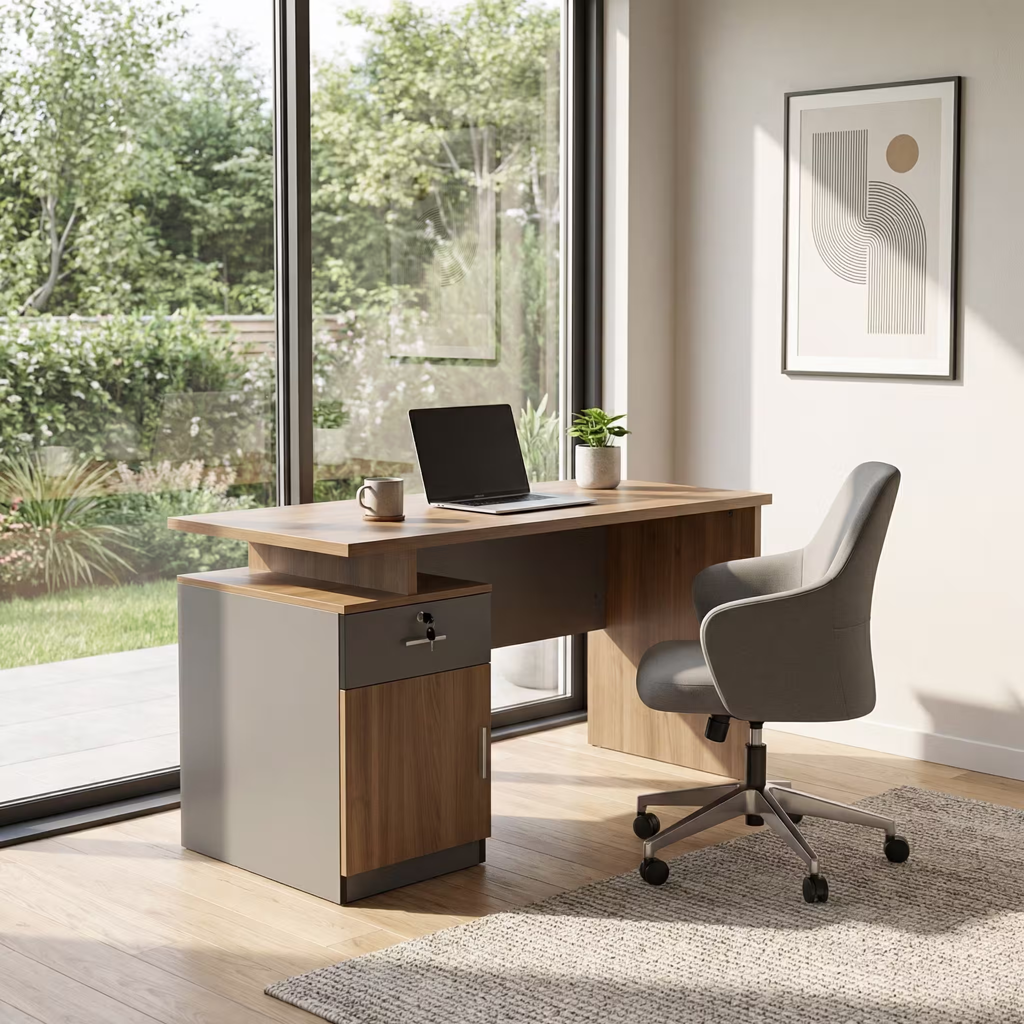 Durability is one of the key strengths of this desk. In addition, it is crafted using strong, locally sourced materials that ensure stability and long-term use. Consequently, the desk can withstand daily office activities without compromising performance. Furthermore, the sturdy frame offers excellent support, allowing users to work confidently throughout the day.