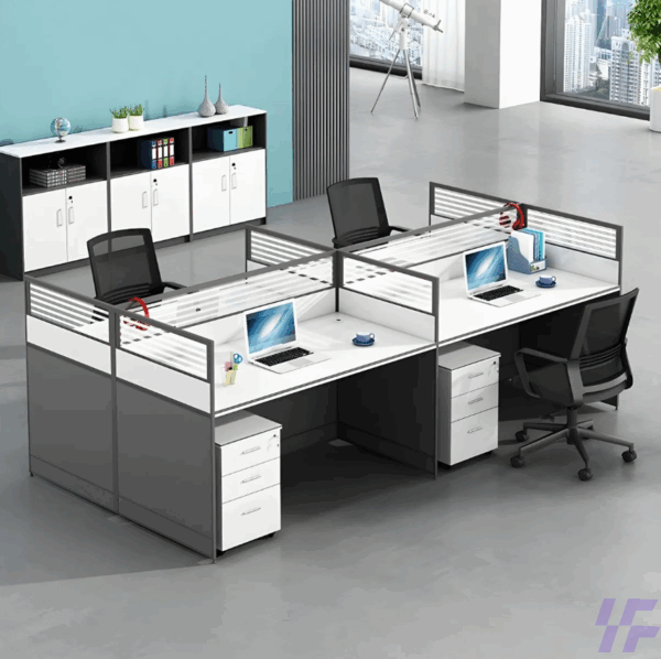 Transform your team’s productivity with the 4-modular workstation—a practical, professional solution for modern offices. Designed to accommodate four users, this workstation supports both individual focus and team collaboration.