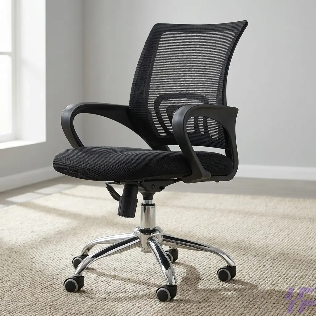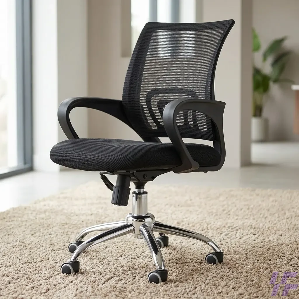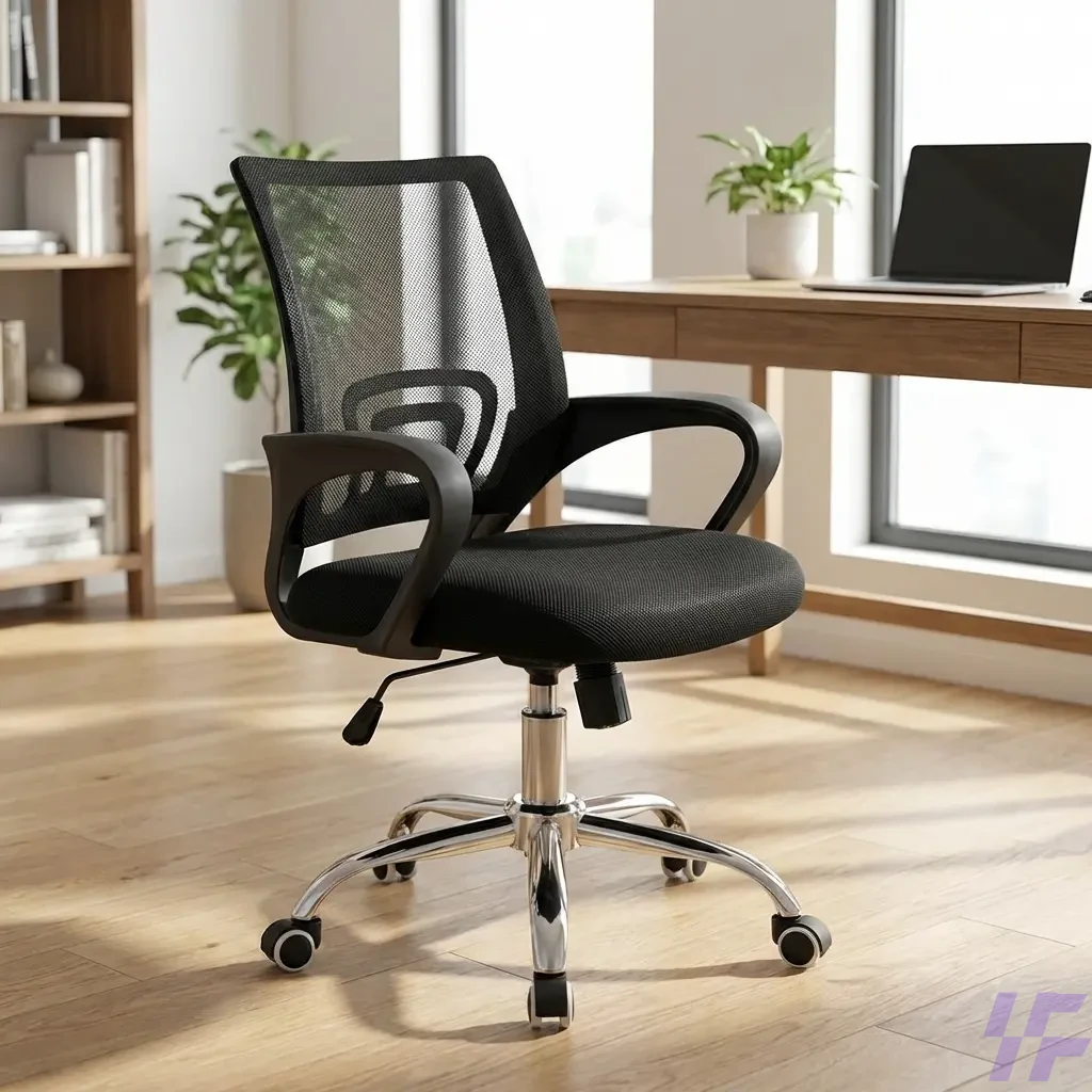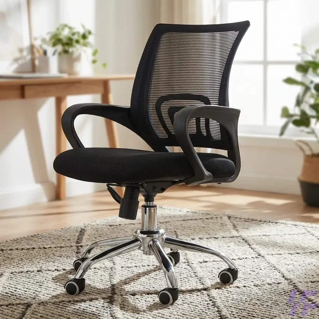 360-degree swivel chair, adjustable computer chair, black swivel desk chair, breathable mesh back chair, chrome base office seating, commercial office furniture, Ergonomic mesh office chair, ergonomic seating for study, Home Office Furniture, lumbar support office chair, mid-back task chair, minimalist task chair, padded seat desk chair, professional workstation chair, rolling executive chair